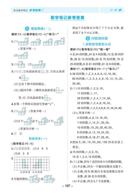 .人教版五年级数学下册《状元数学笔记+参考答案》学教