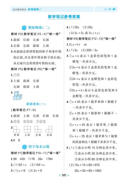 .冀教版四年级数学下册《状元数学笔记+参考答案》学教