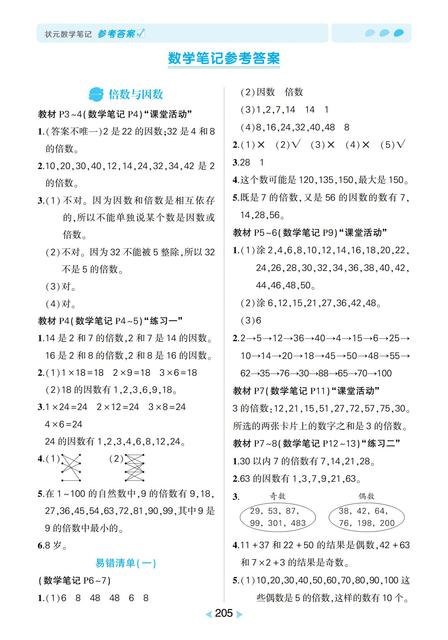 .西南师大版五年级数学下册《状元数学笔记+参考答案》学教