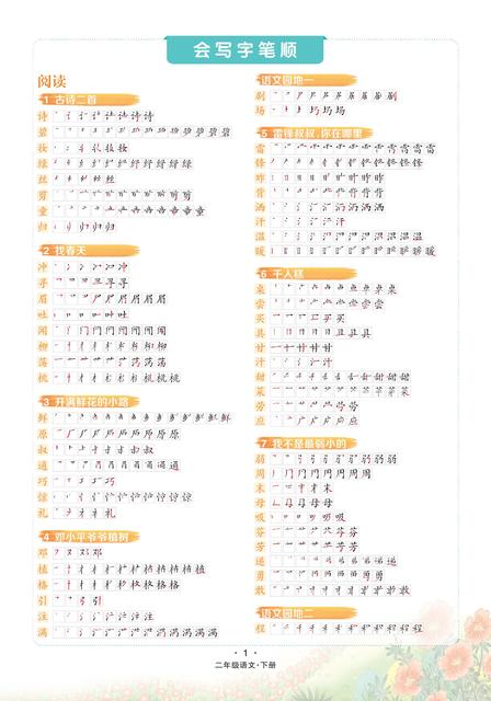 统编版二年级语文下册《状元语文笔记 会认字笔顺》学教