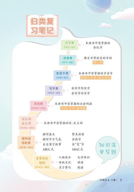 统编版二年级语文下册《状元语文笔记 背记清单》学教
