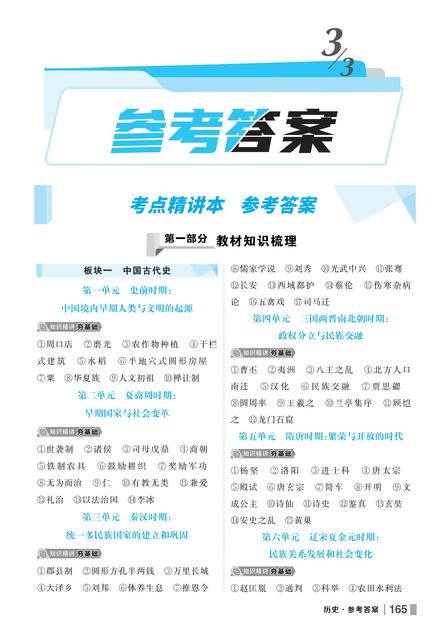 《创优中考大课堂》历史 参考答案