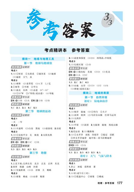 《创优中考大课堂》地理 参考答案