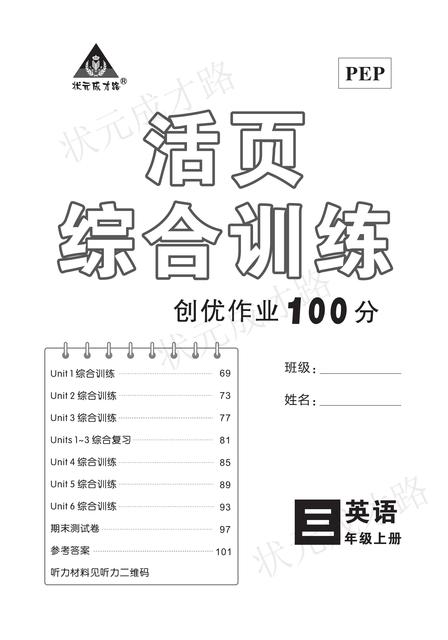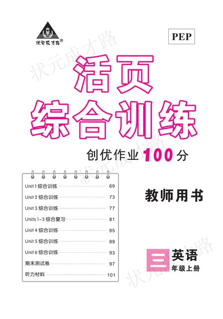 人教PEP版三年级英语上册《创优作业100分.活页试卷》教用