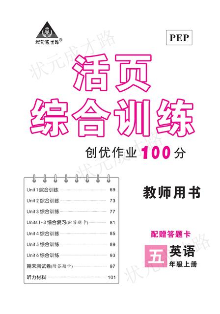 人教PEP版五年级英语上册《创优作业100分.活页试卷》教用