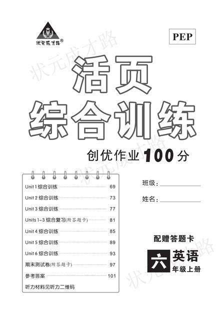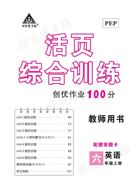 人教PEP版六年级英语上册《创优作业100分.活页试卷》教用
