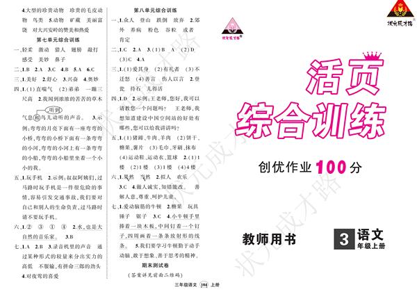 统编版三年级语文上册《创优作业100分 试卷》教用