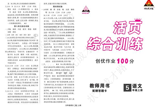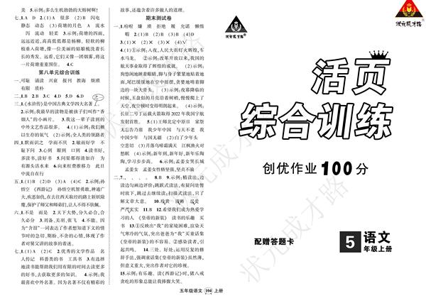 统编版五年级语文上册《创优作业100分 试卷》教用