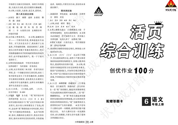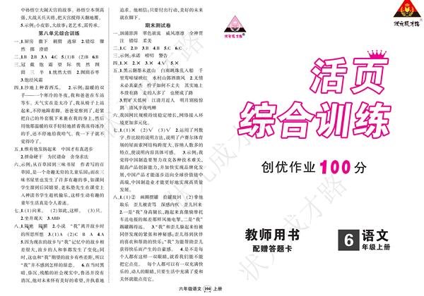 统编版教六年级语文上册《创优作业100分 试卷》教用