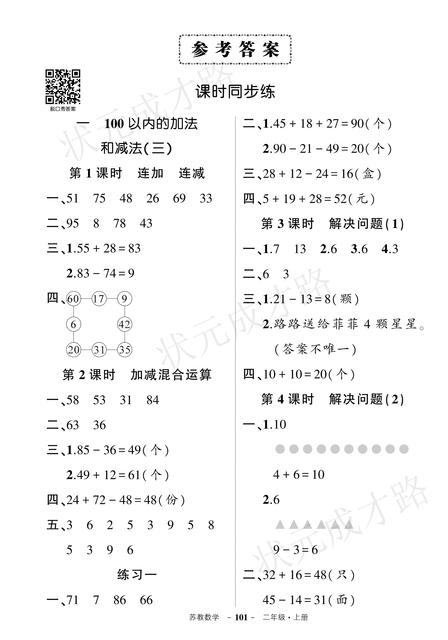 苏教版二年级数学上册《创优作业100分.试卷》学用