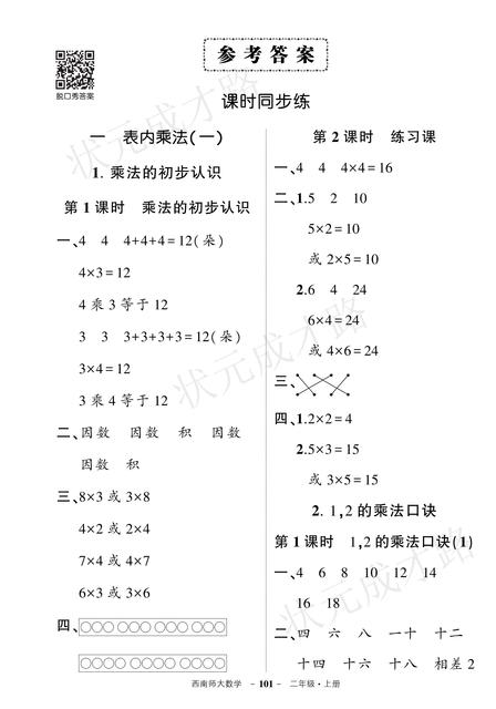西南师大版二年级数学上册《创优作业100分.试卷》学用