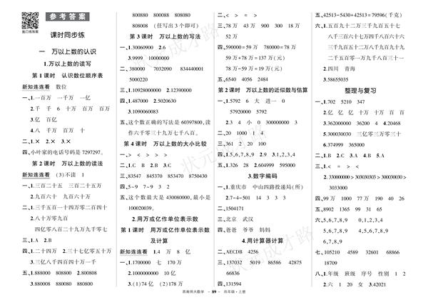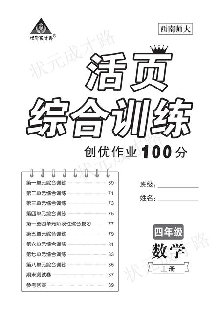 西南师大版四年级数学上册《创优作业100分.试卷》学用