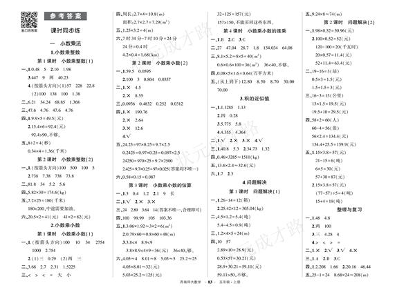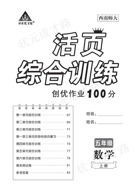西南师大版五年级数学上册《创优作业100分.试卷》学用