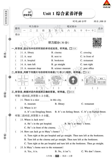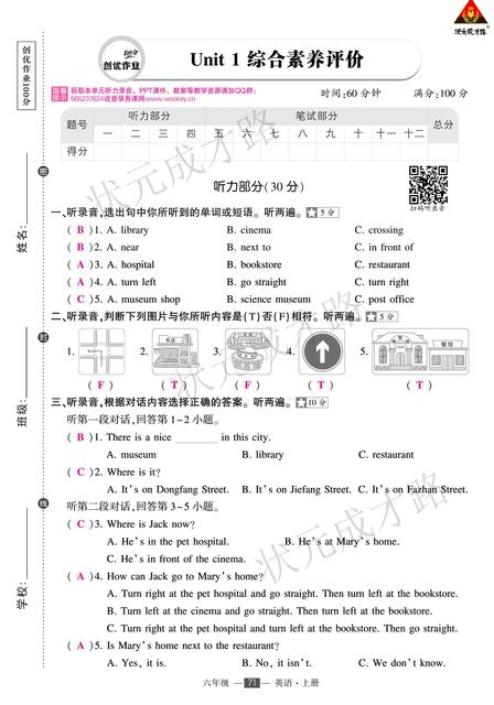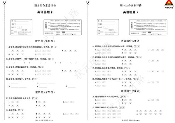(浙江)PEP6英上100分 答题卡