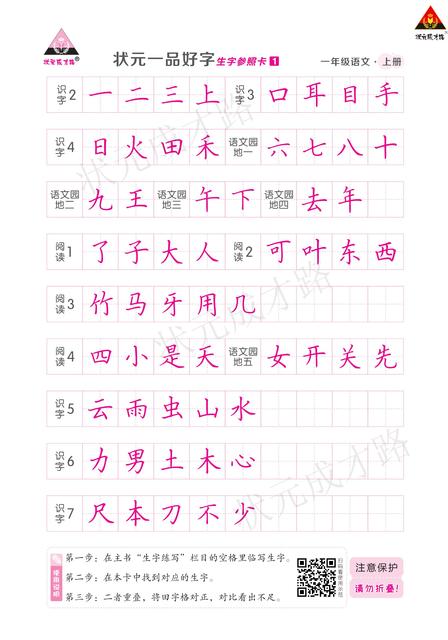 统编版一年级语文上册《状元一品好字 生字参照卡》