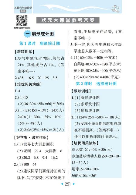 苏教版六年级数学下册《状元大课堂 答案》学教