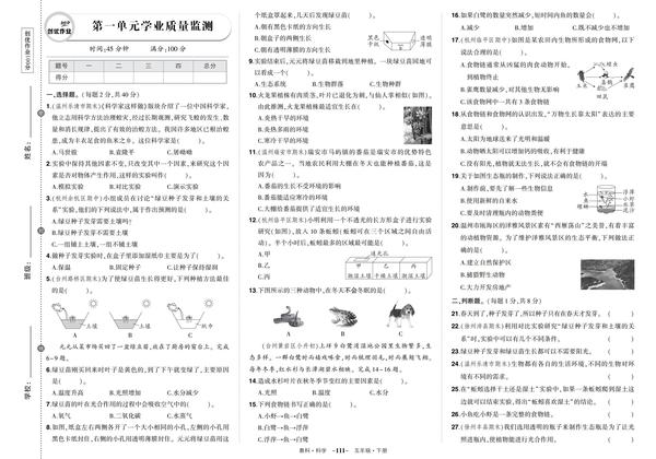 5科学下100分 试卷 学