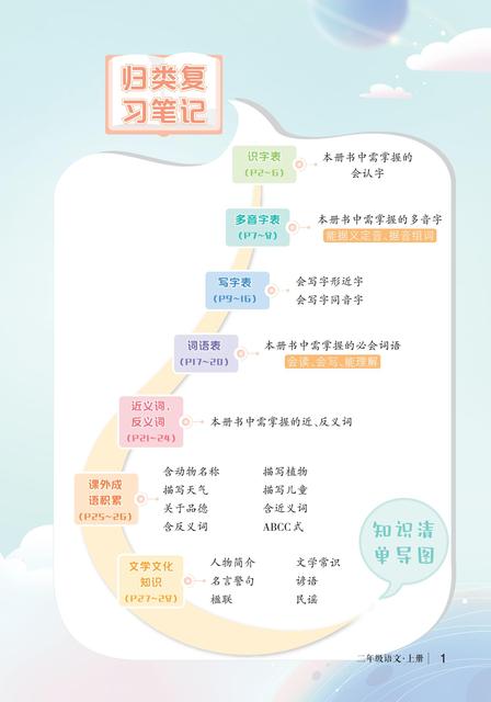 统编版二年级语文上册《状元语文笔记 背记清单》