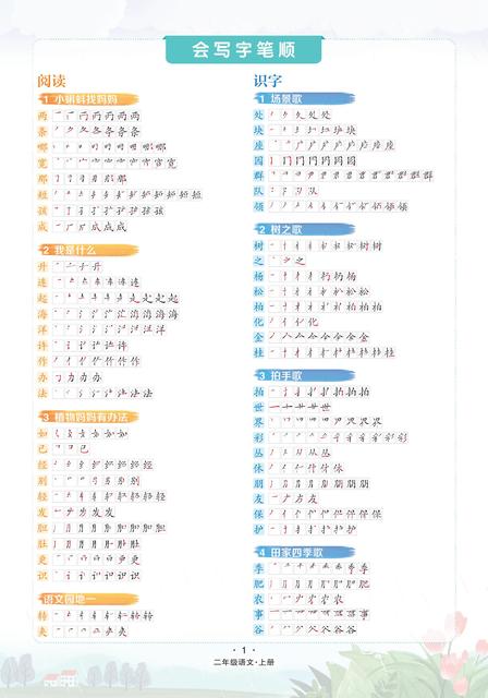 统编版二年级语文上册《状元语文笔记 会写字笔顺》