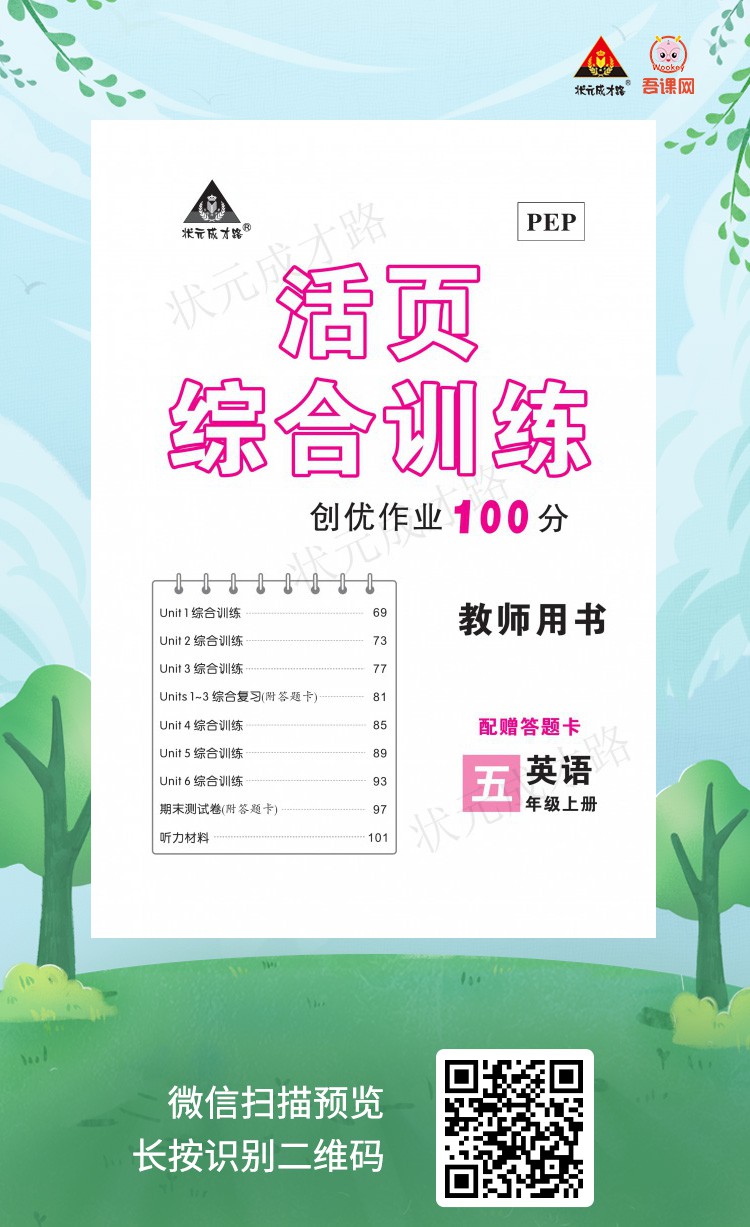 人教PEP版五年级英语上册《创优作业100分.活页试卷》教用