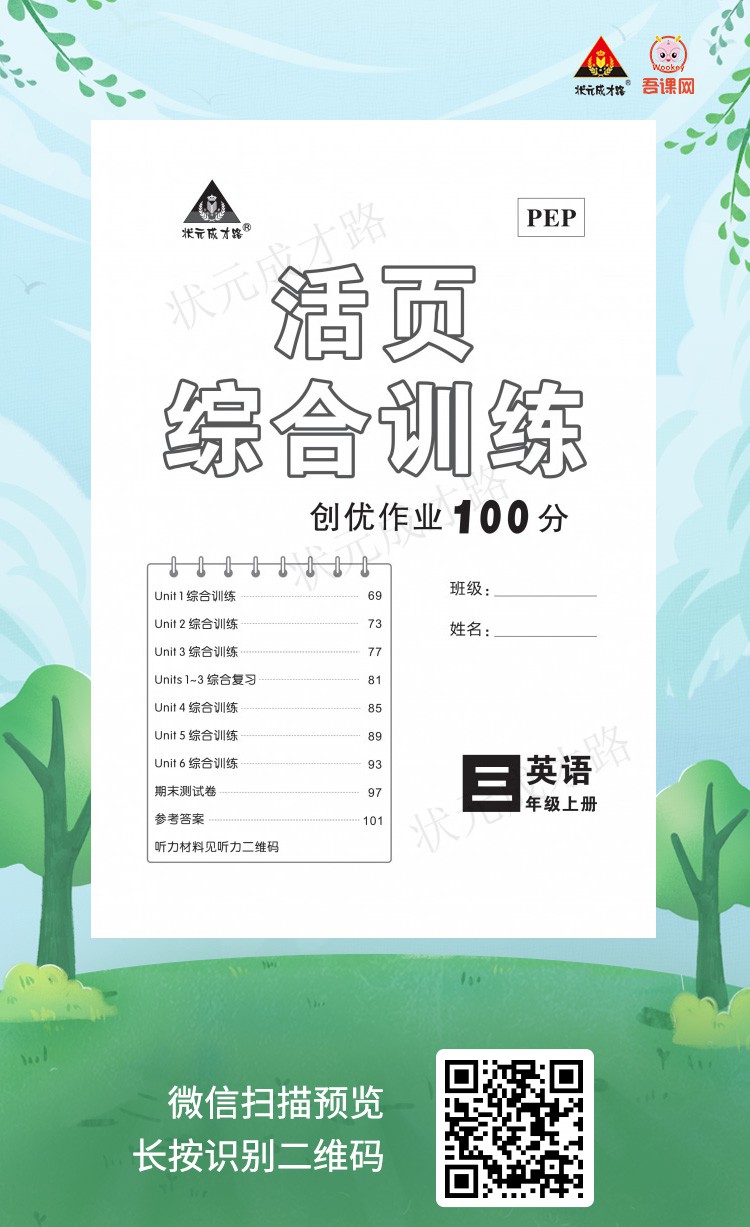 人教PEP版三年级英语上册《创优作业100分.活页试卷》学用