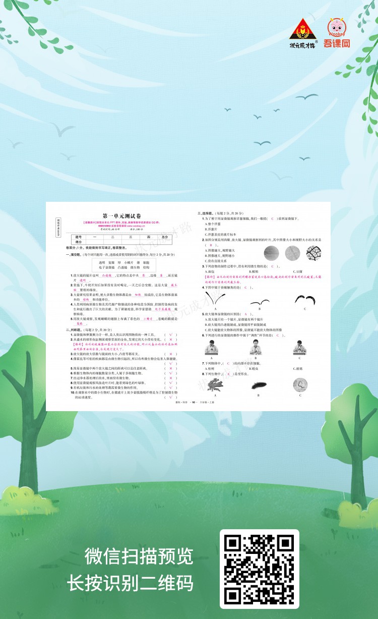 教科版六年级科学上册《创优作业100分.活页试卷》教用