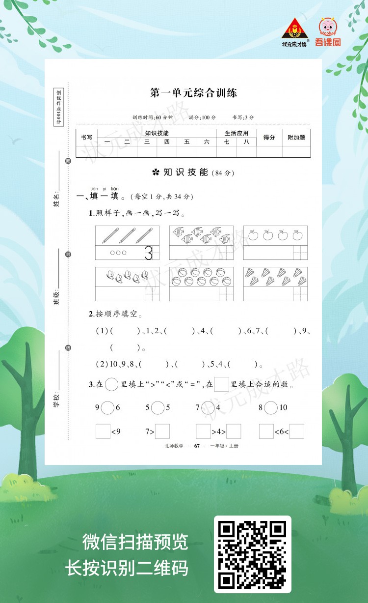 北师版一年级数学上册《创优作业100分.试卷》学用
