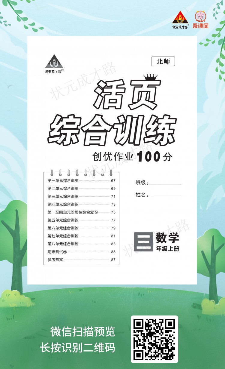 北师版三年级数学上册《创优作业100分.试卷》学用