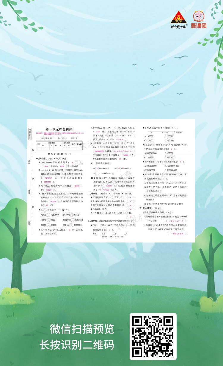 北师版四年级数学上册《创优作业100分.试卷》教用