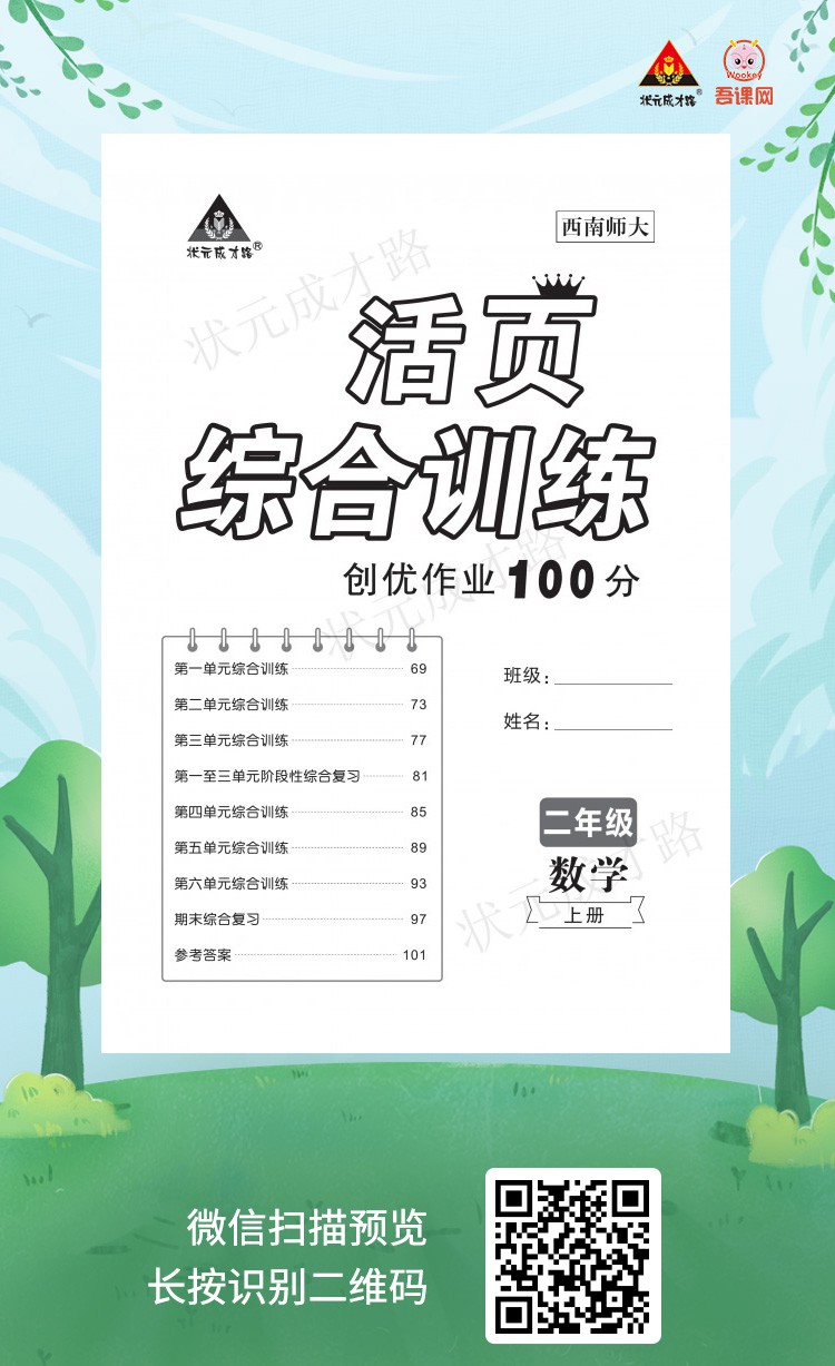 西南师大版二年级数学上册《创优作业100分.试卷》学用