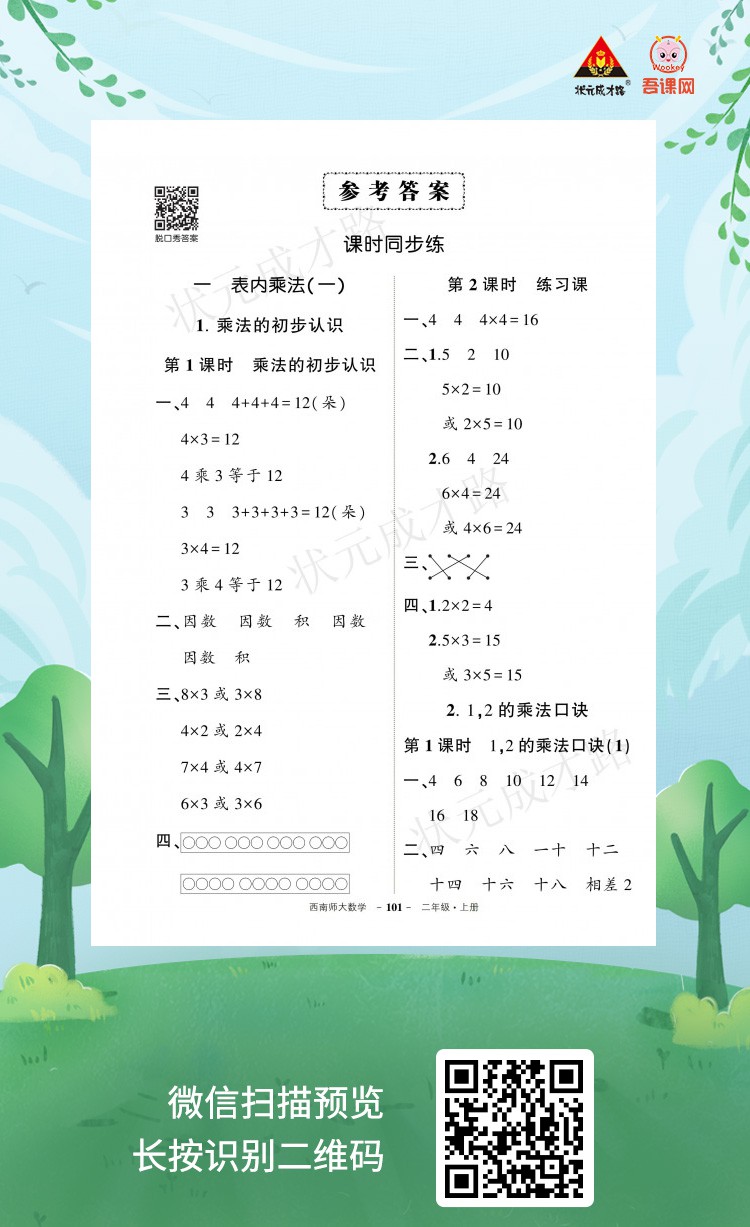 西南师大版二年级数学上册《创优作业100分.答案》