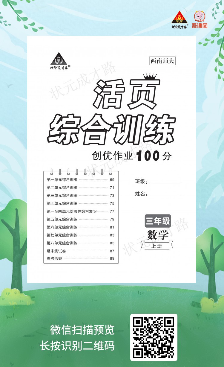 西南师大版三年级数学上册《创优作业100分.试卷》学用