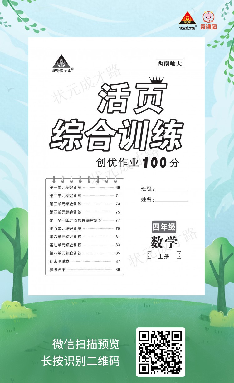西南师大版四年级数学上册《创优作业100分.试卷》学用