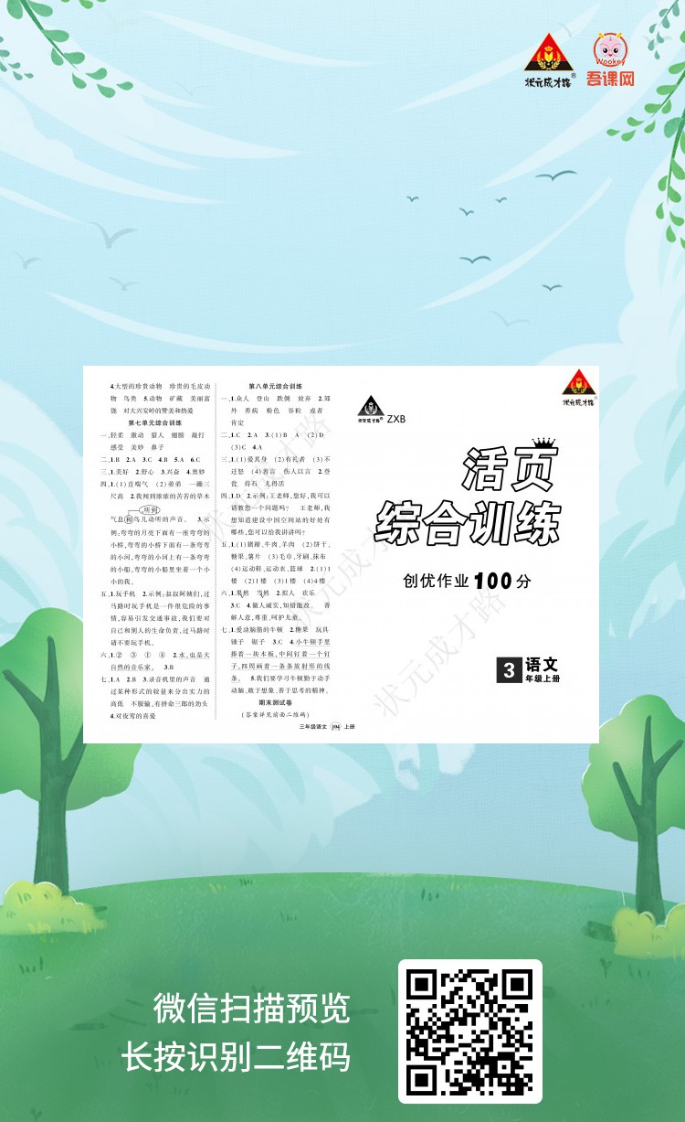 统编版三年级语文上册《创优作业100分 试卷》学用