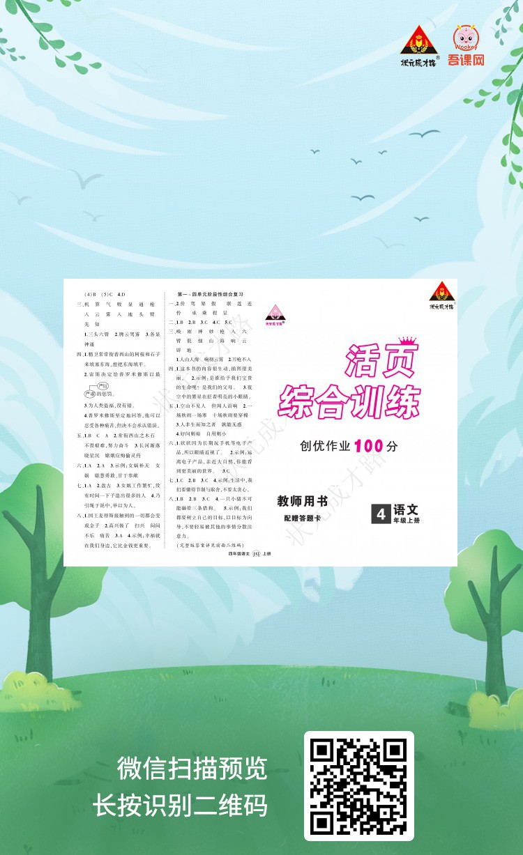 统编版四年级语文上册《创优作业100分 试卷》教用