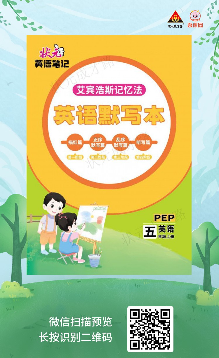 人教PEP版五年级英语上册《状元英语笔记.默写本》