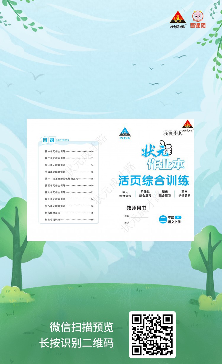 (福建)统编版二年级语文上册《状元作业本 试卷》 教用