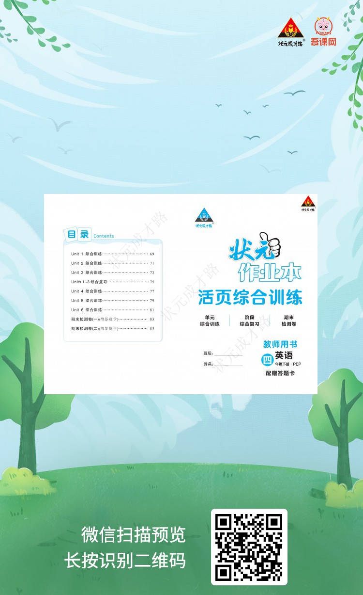 人教PEP版四年级英语下册《状元作业本 试卷》教用