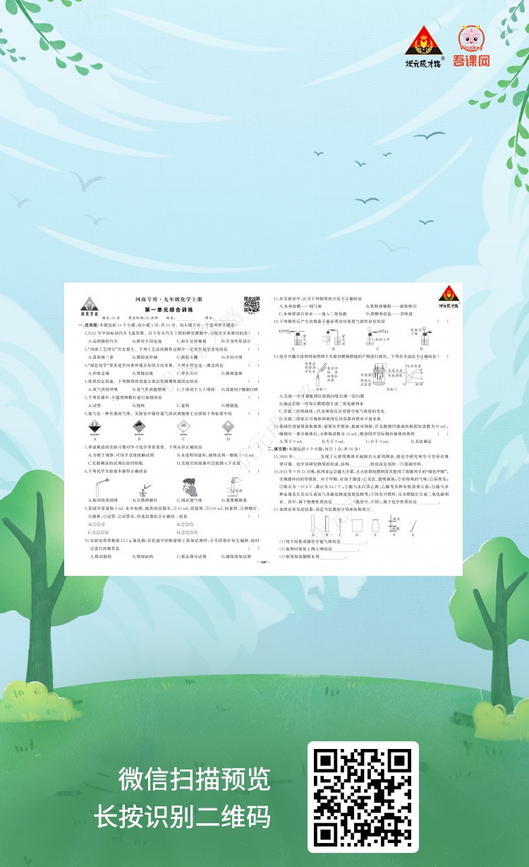 (河南)人教版九年级化学上册《创优作业 试卷+答案+答题卡》学用