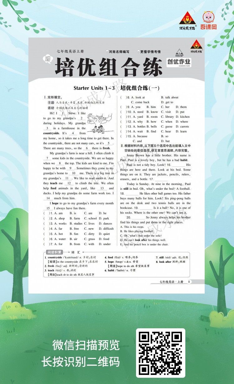 (河南)人教版七年级英语上册《创优作业 培优组合练》学用