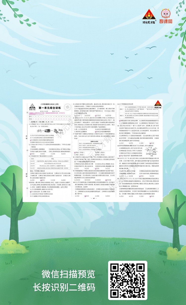 统编版八年级道德与法治上册《创优作业 试卷》教用