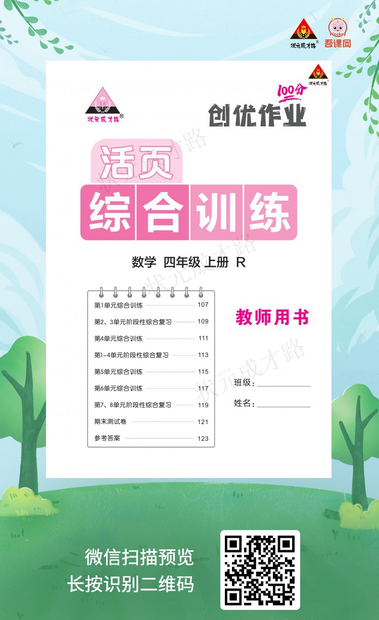 (浙江)人教版四年级数学上册《创优作业100分 试卷》教用