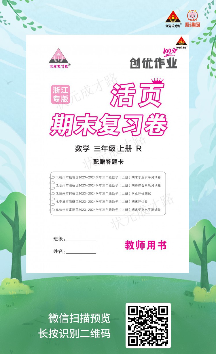 (浙江)人教版三年级数学上册《创优作业100分 真题卷》教用