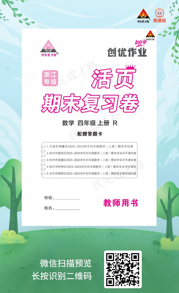 (浙江)人教版四年级数学上册《创优作业100分 真题卷》教用