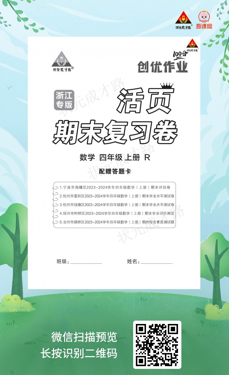 (浙江)人教版四年级数学上册《创优作业100分 真题卷》学用