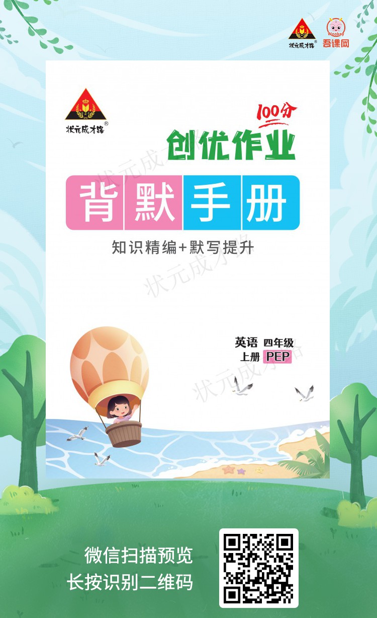 (浙江)人教PEP版四年级英语上册《创优作业100分 默背手册》学教
