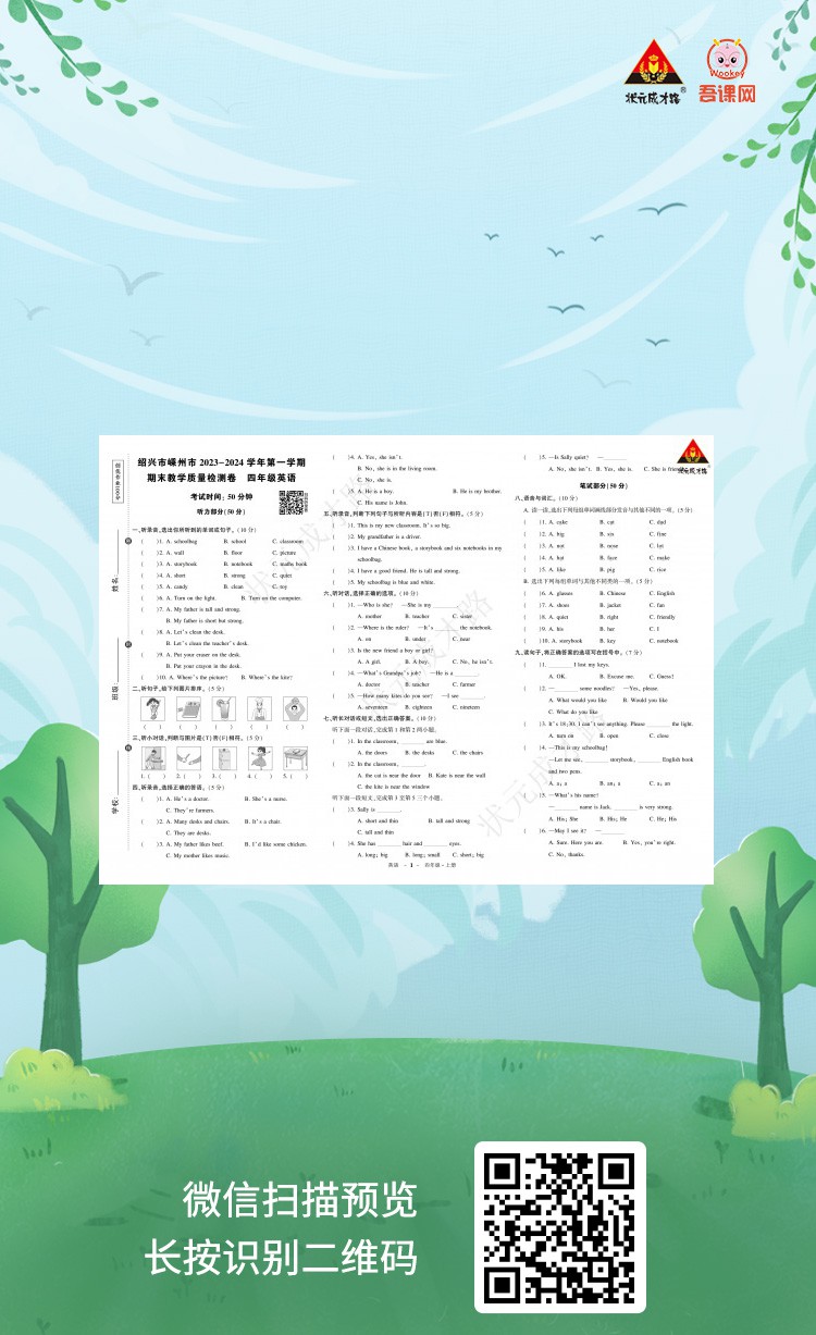 (浙江)人教PEP版四年级英语上册《创优作业100分 真题卷》学用