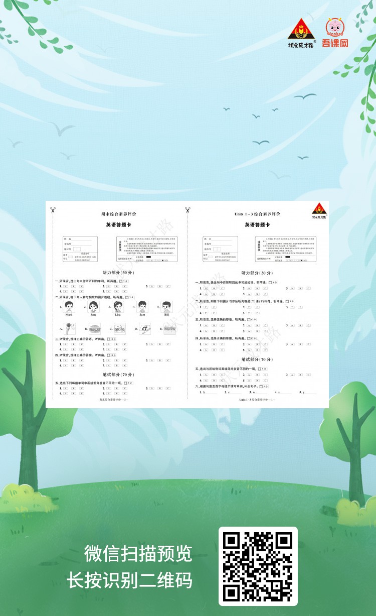(浙江)人教PEP版五年级英语上册《创优作业100分 答题卡》