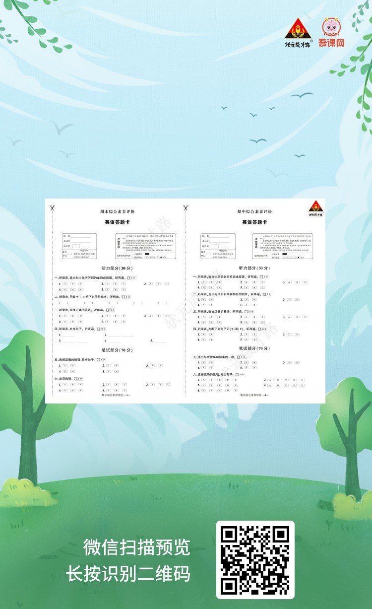 (浙江)人教PEP版六年级英语上册《创优作业100分 答题卡》