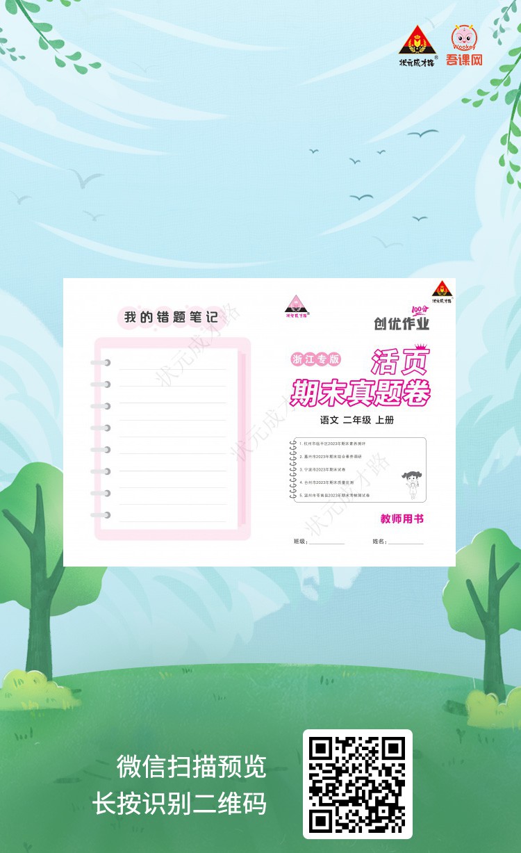 (浙江)统编版二年级语文上册《创优作业100分 真题卷》教用